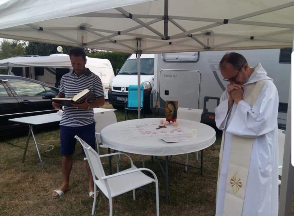 L’entrée sur les terrains sera le mercredi 17 août à 14h cette année, parce que le pèlerinage national des Gadjés, juste avant, se termine seulement le 16 août. Notre pèlerinage se terminera le mercredi 24 août après la messe à la grotte (programme page suivante).